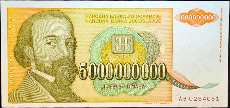 Novčanica: - YUGOSLAVIA / JUGOSLAVIJA (1993) 5 000 000 000 Dinara - AB0264051
