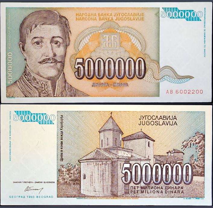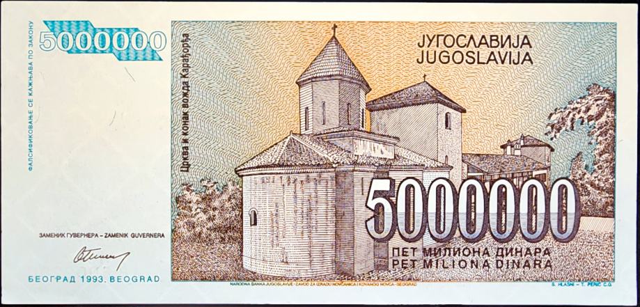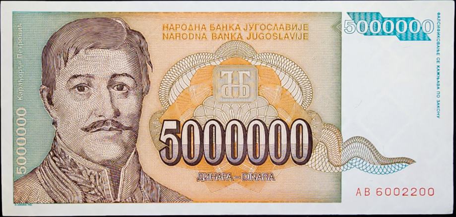 Novčanica: - YUGOSLAVIA / JUGOSLAVIJA (1993) 5 000 000 Dinara UNC