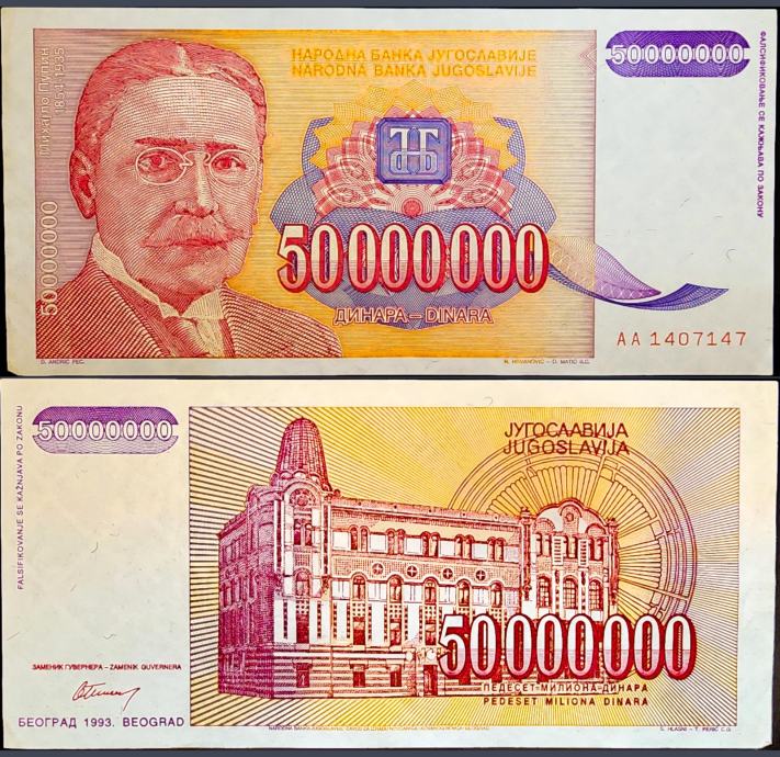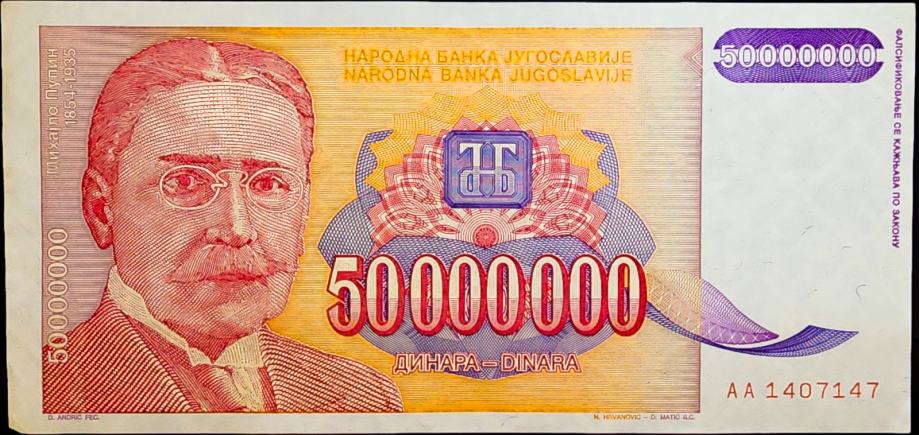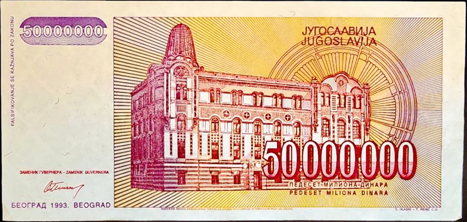 Novčanica: - YUGOSLAVIA / JUGOSLAVIJA (1993) 50 000 000 Dinara UNC - AA1407147