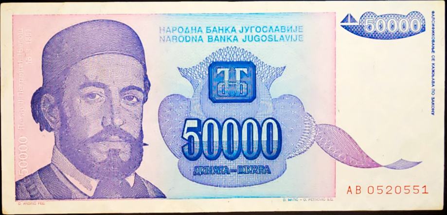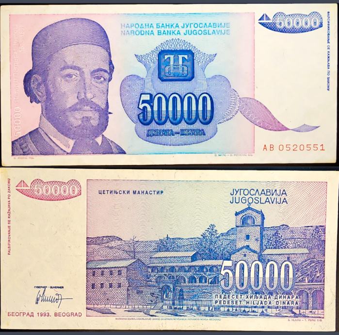 Novčanica: - YUGOSLAVIA / JUGOSLAVIJA (1993) 50 000 Dinara - AB0520551