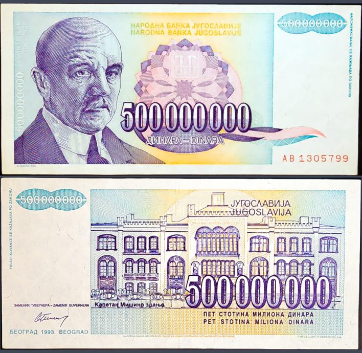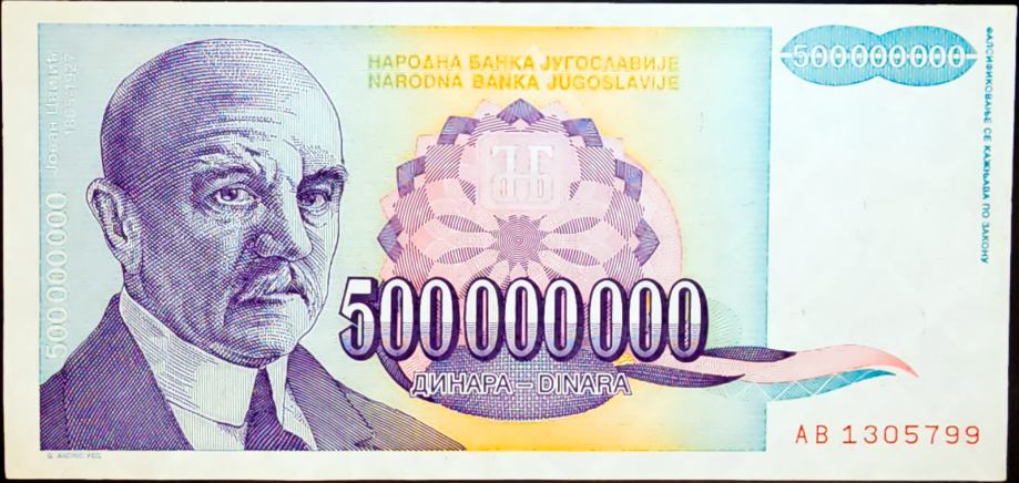 Novčanica: - YUGOSLAVIA / JUGOSLAVIJA (1993) 500 000 000 Dinara - AB1305799
