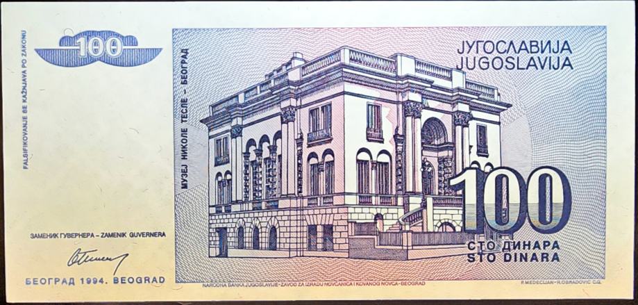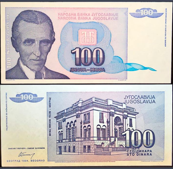 YUGOSLAVIA / JUGOSLAVIJA (1994) 100 Dinara - Tesla UNC