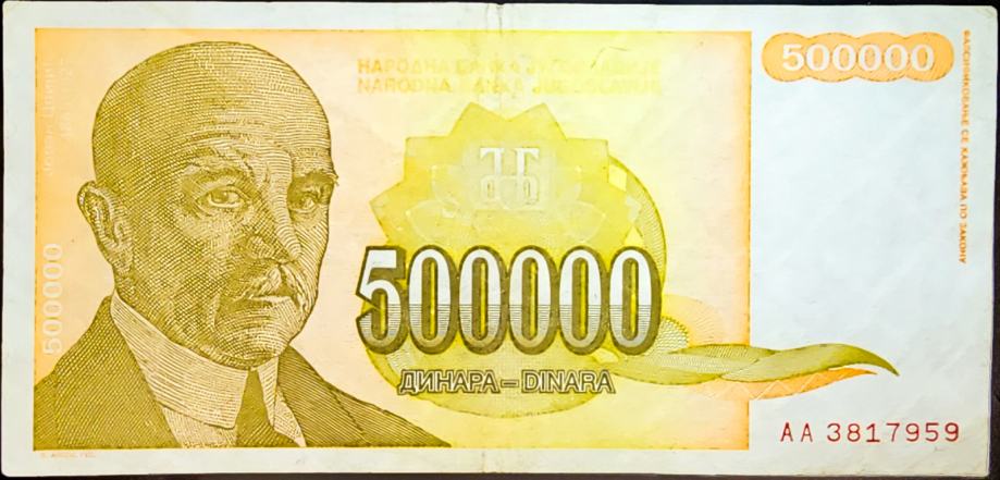 Novčanica: - YUGOSLAVIA / JUGOSLAVIJA (1994) 500 000 Dinara - AA3817959