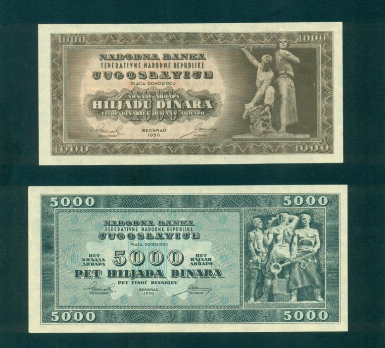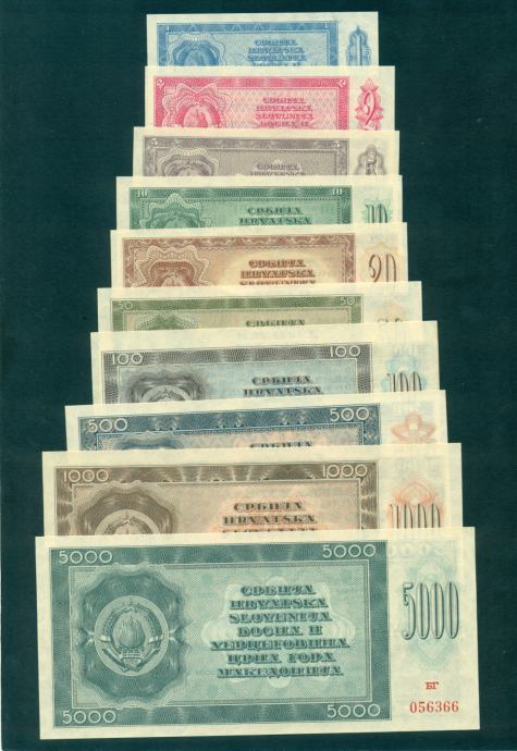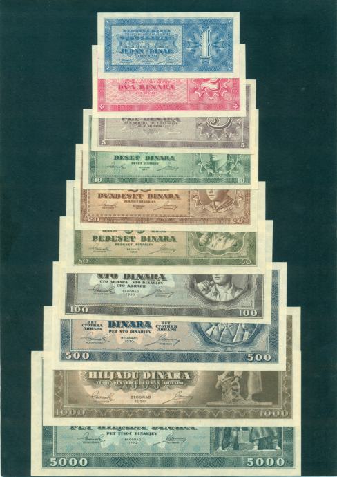 KOMPLETE SE SASTOJI OD 10 APOENA: 1,2,5,10,20,50,100,500,1000 I 5000 DINARA 1950.
