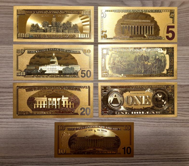 Set zlatnih novčanica USD, replika, 7 apoena
