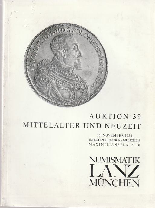 AUCIJSKI KATALOG 39 NUMISMATIK LANZ 25.11.1986