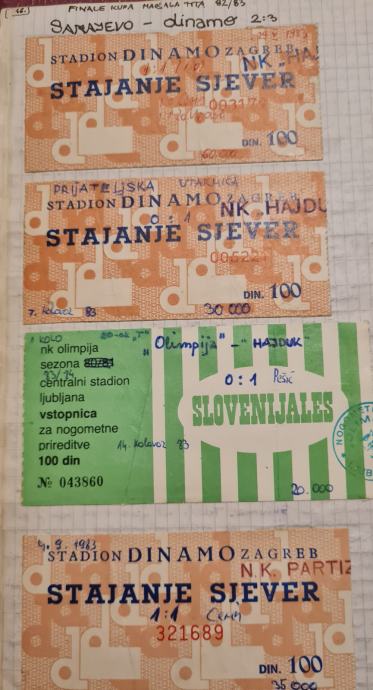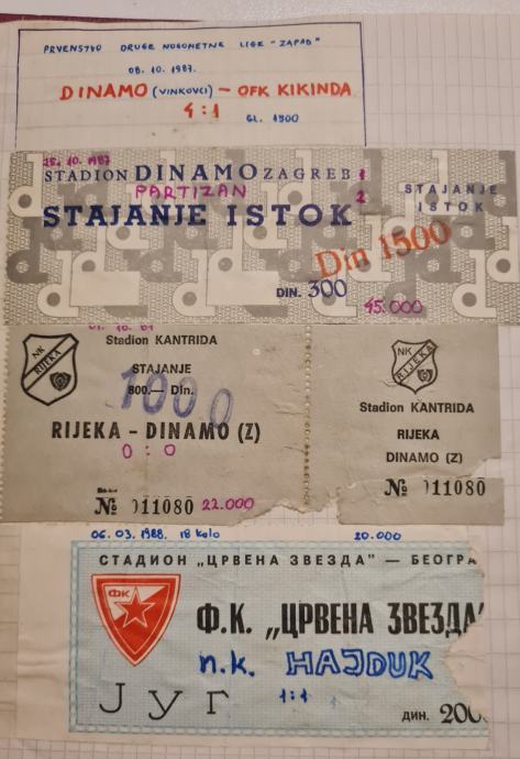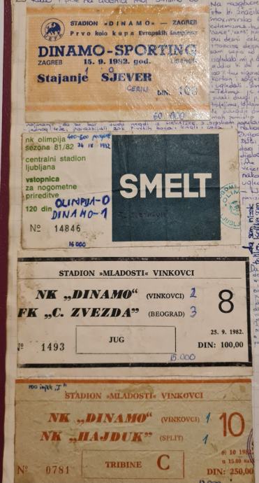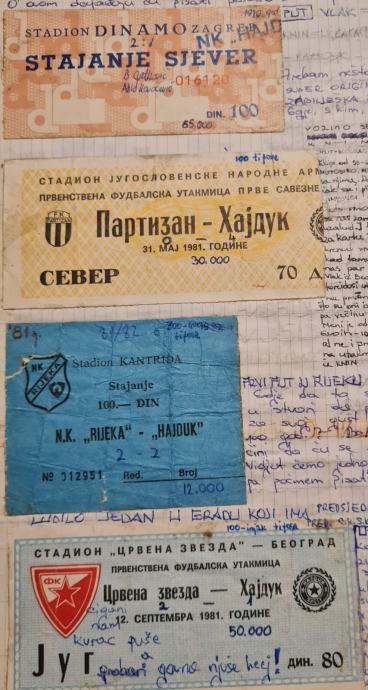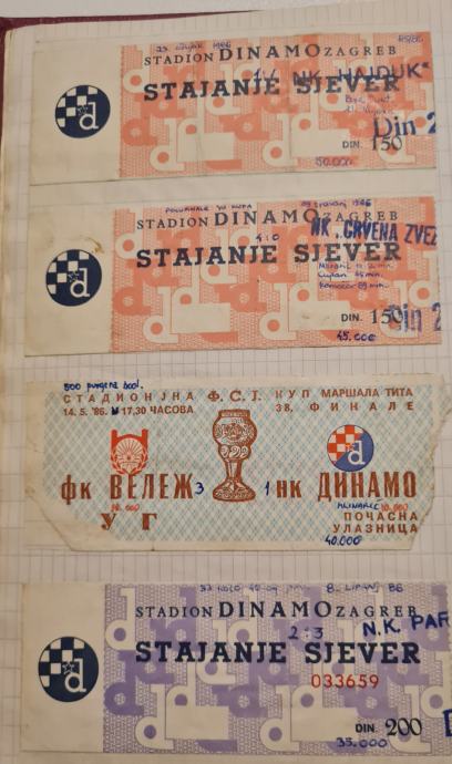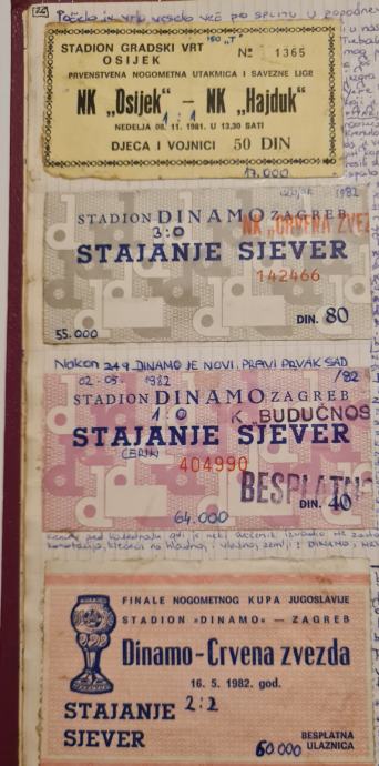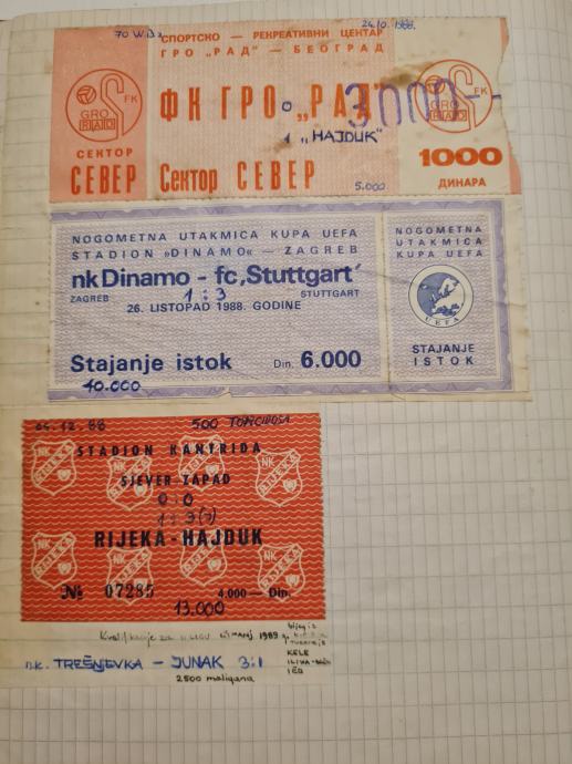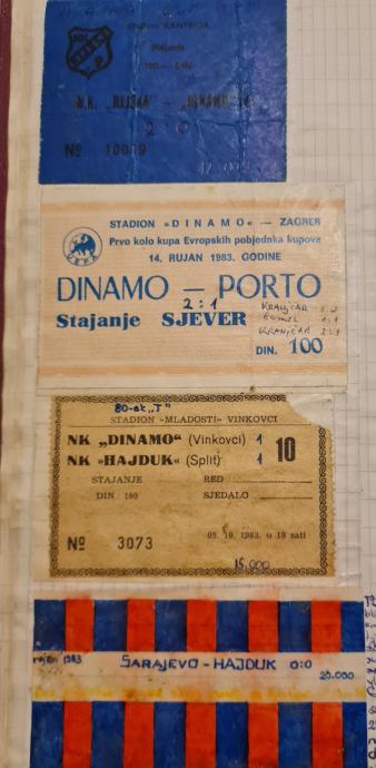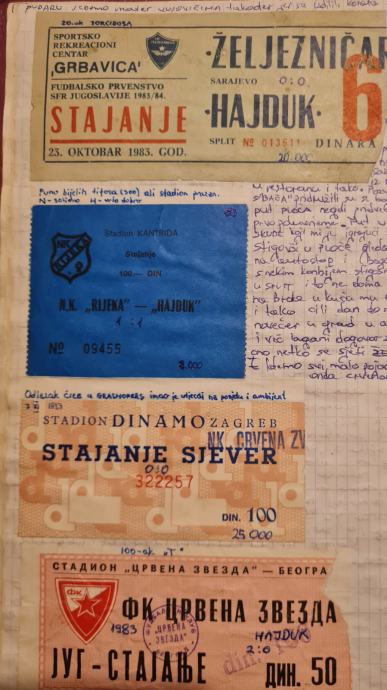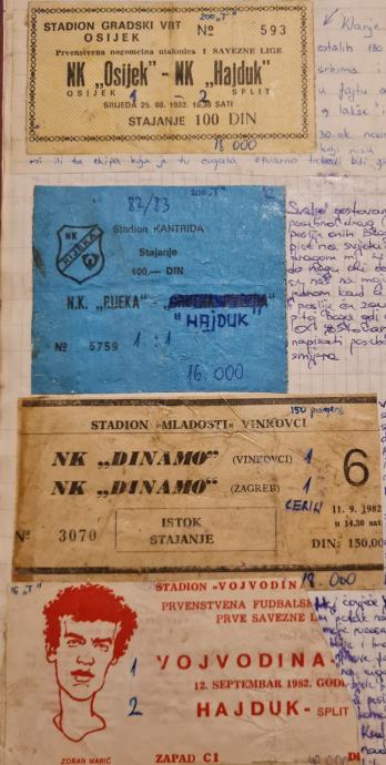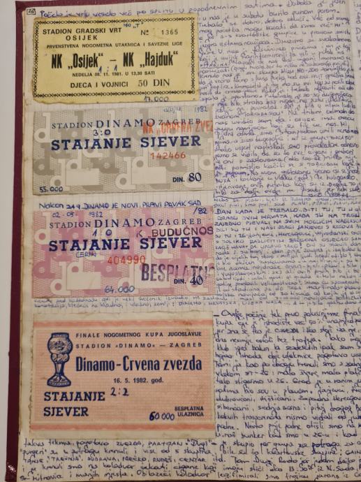 Prodajem dvije bilježnice iz 80-ih godina koje sadrže oko 90 ulaznica te zapise sa pojedinih derbija između Dinama i ostalih ex yu klubova..