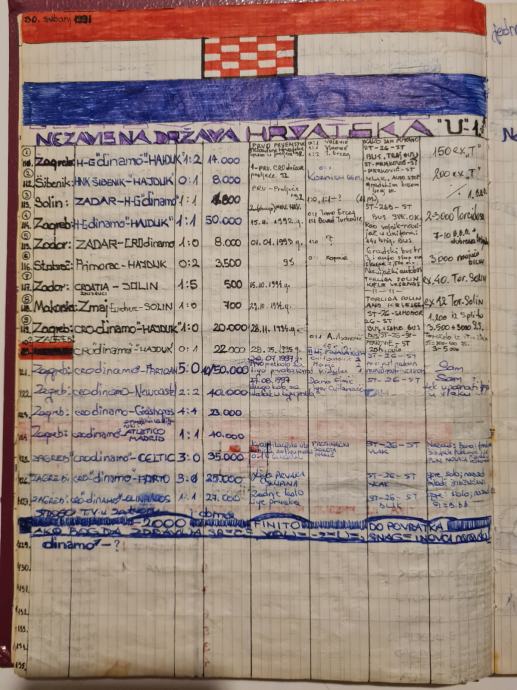 Bilježnica krije jako puno detalja iz 80'‐ih godina i vremena kad su Boysi i Torcida zajedno išli na utakmice..