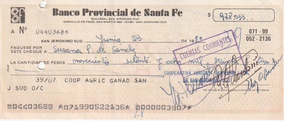 BANKO PROVINCIJAL DE SANTA FE 1980