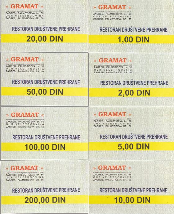 BONOVI ZA PREHRANU "GRAMAT"VRIJEDNOSTI 1,2,5,10,20,50,100,200,DINARA