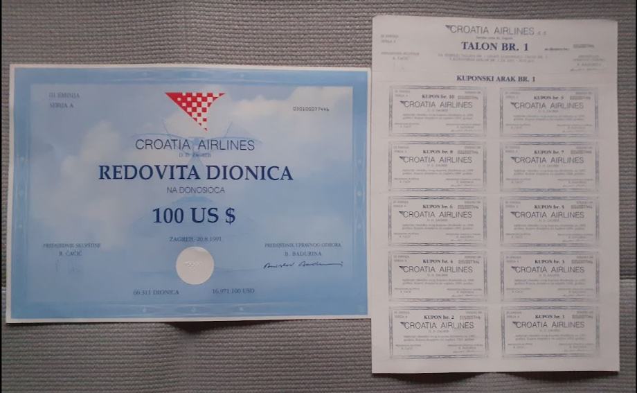 Dionica Croatia Airlines sa Talonom i Kuponskim arkom; III emisija; serija A;