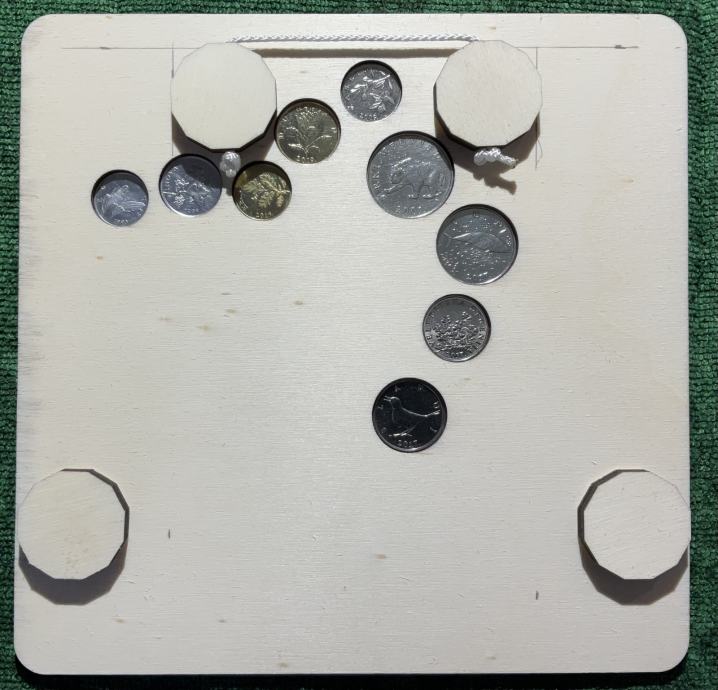 Drvena ploča/display sa setom od svih 9 kovanica Hrvatskih Kuna.