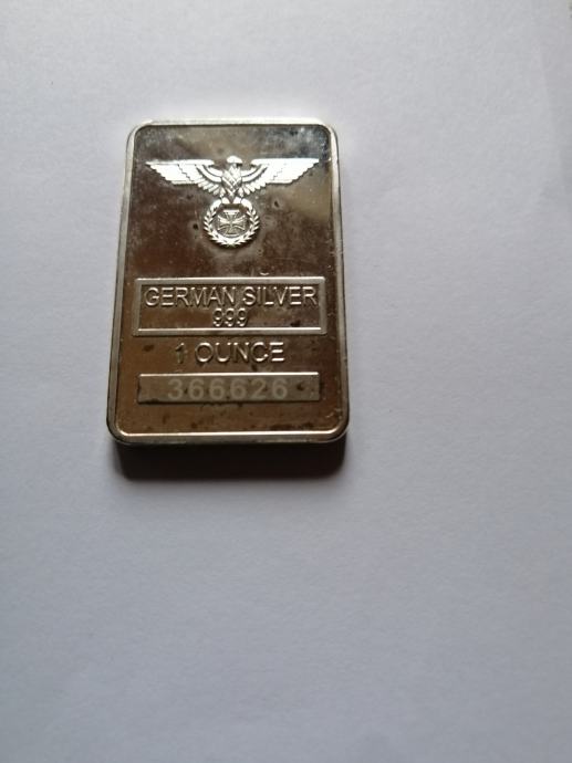 GERMAN SILVER , 1 OUNCE, Kolekcionarski primjerak !!!