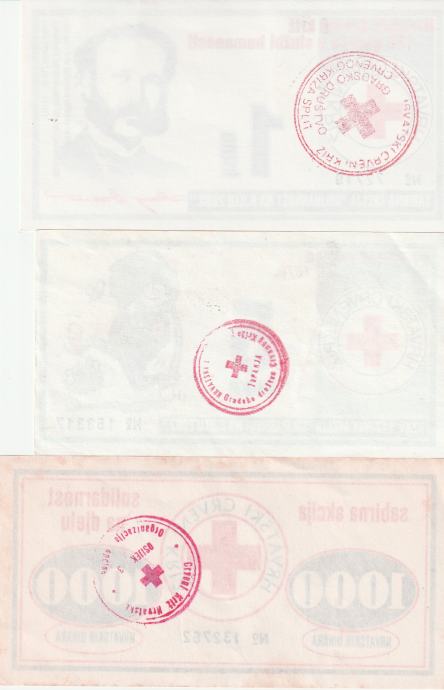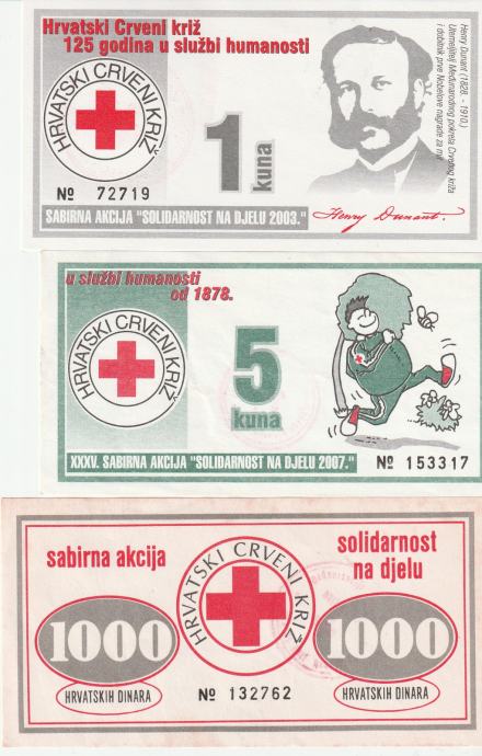 HRVATSKI CRVENI KRIŽ ,1 KUNA,5 KUNA I1000 HRD UNC U LOTU