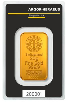 INVESTICIJSKO ZLATO FINOCE .999, ZLATNA POLUGA 20G.
