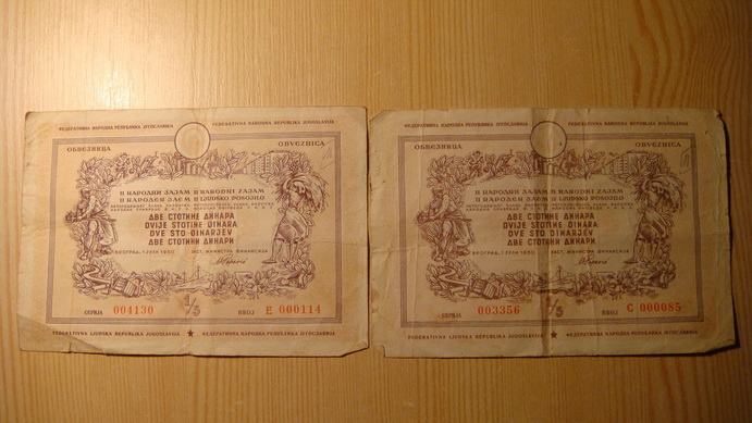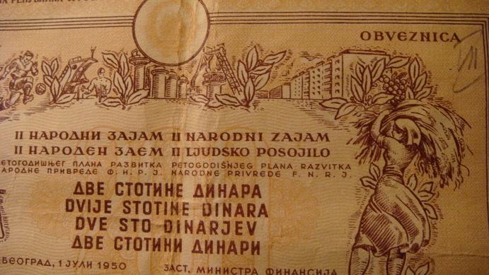 Obveznice od 200 dinara iz 1950.g. FNRJ