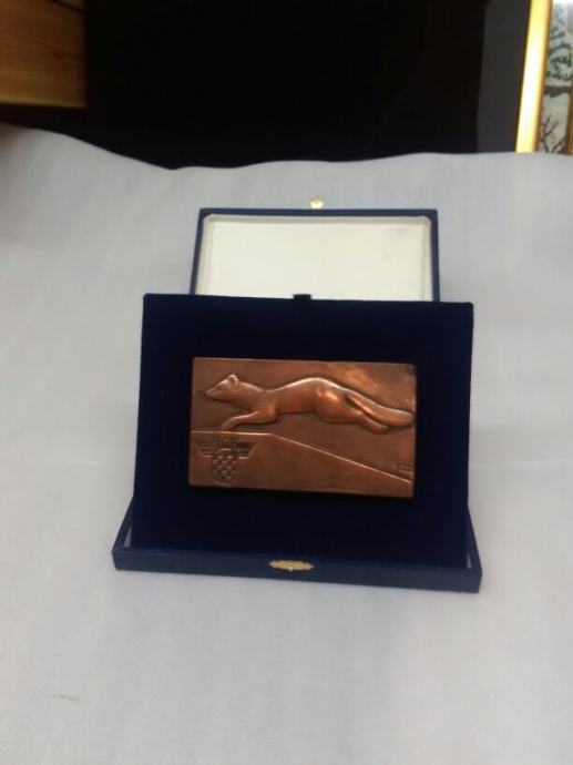130 x 80 mm, plaketa koja se svake godine u više karegorija dodjeljuje najuspješnijim poduzetnicima i poduzećima. Odljev u bronci lijepo saćuvana.