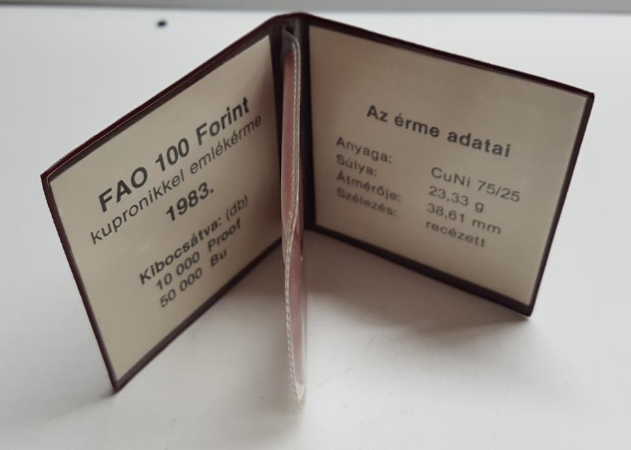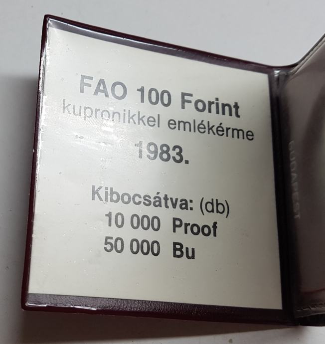 PRAZNI ETUI MAĐARSKA BUDIMPEŠTA, FAO 100 FORINT 1983. SA CERTIFIKATOM