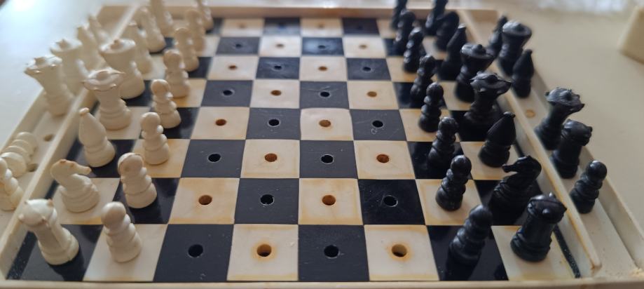 Na prodaju numizmatički mini prijenosni ubodni ruski šah iz 70" tih godina sa kompletom rezervnih figurica u vrlo dobrom stanju !!