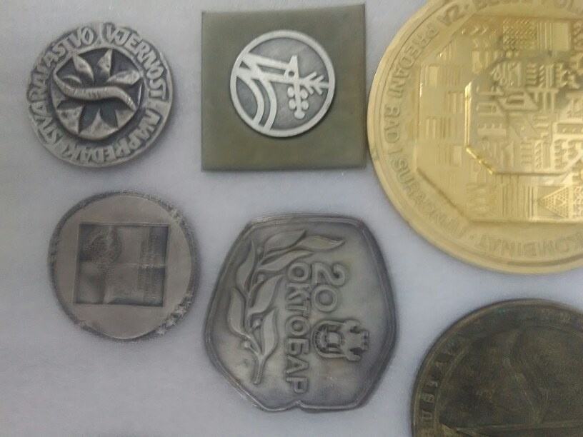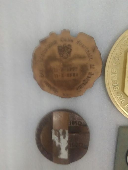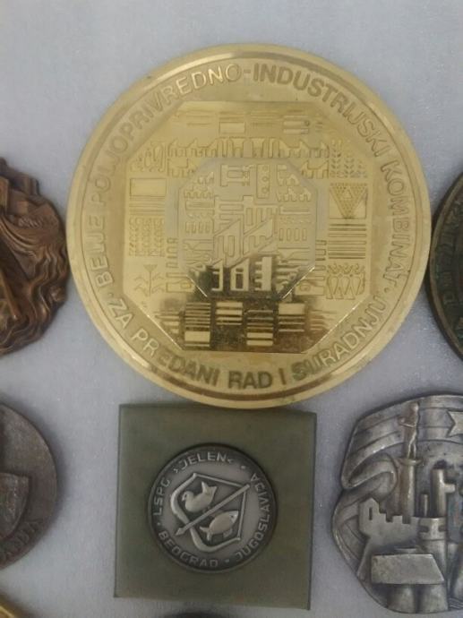 Ove plakete mogu komadno. Belje 150 kn, 20 oktobar 150kn,muzej Baranje 100 kn, vjern. stvar. napred 50kn,jelen Beograd 50kn,ferimport 50kn, Drvar 50kn,Bergano 100kn,savez defektologa 50kn i hrvačka bronca 30kn. Komplet 500kn.Ferimport je prodana.