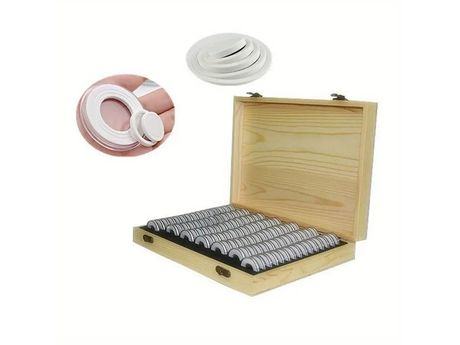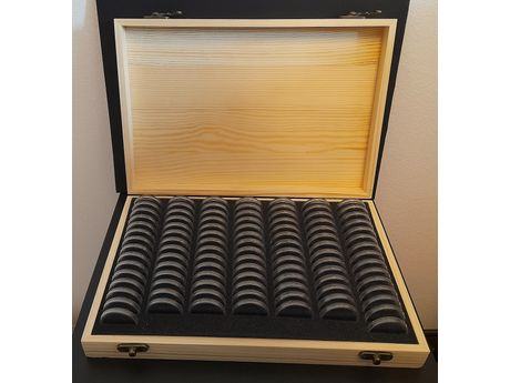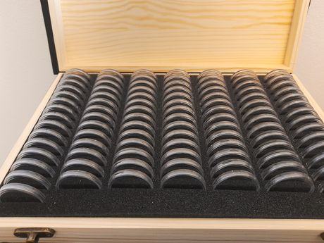 Set 100 kapsula za kovanice promjera 30 mm (idealno za kovanice 2 EUR) + DRVENA KUTIJA + UMETCI