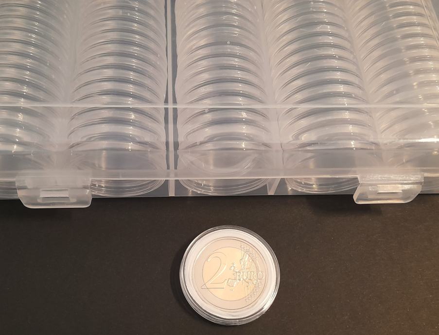 Set 100 kapsula za kovanice do 30 mm (2 EUR) + kutija + bijeli umetci