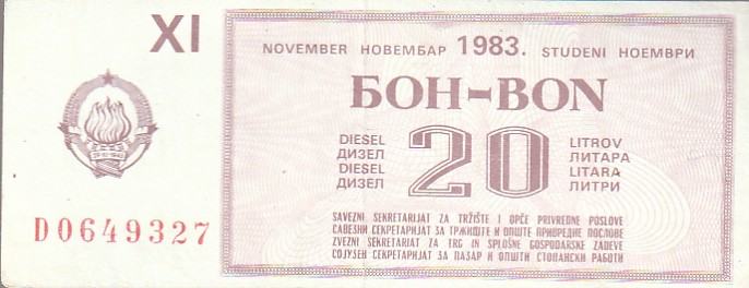 SFRJ BON ZA 20 L DIZEL GORIVA 1983 G STUDENI