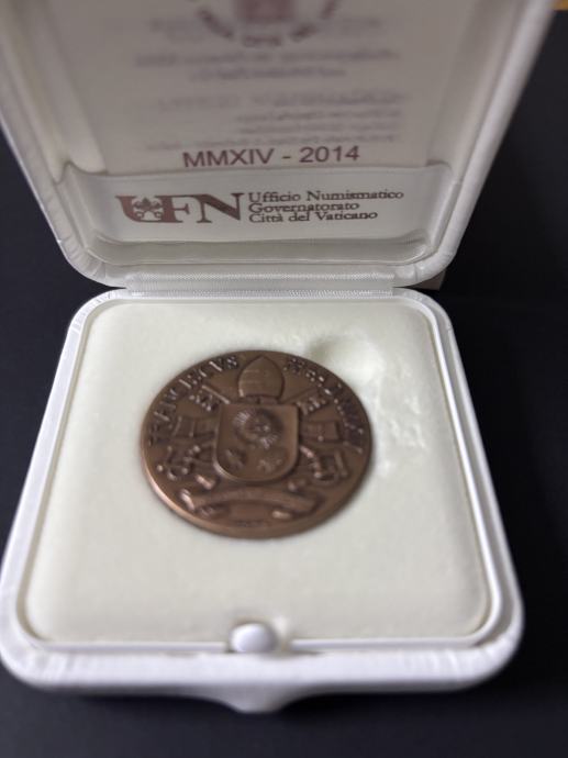 Prodaje se službena brončana medalja Vatikana iz 2014. godine, izdana povodom kanonizacije pape Ivana XXIII i pape Ivana Pavla II.