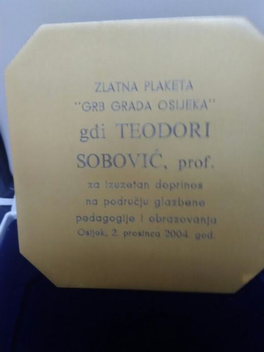Zlatna plaketa GRB GRADA OSIJEKA