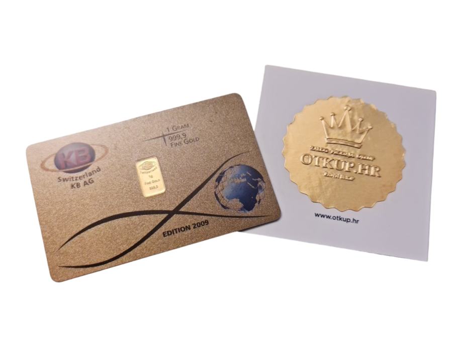 Prodajemo zlatnu polugu od 1 grama 24 karatnog zlata.