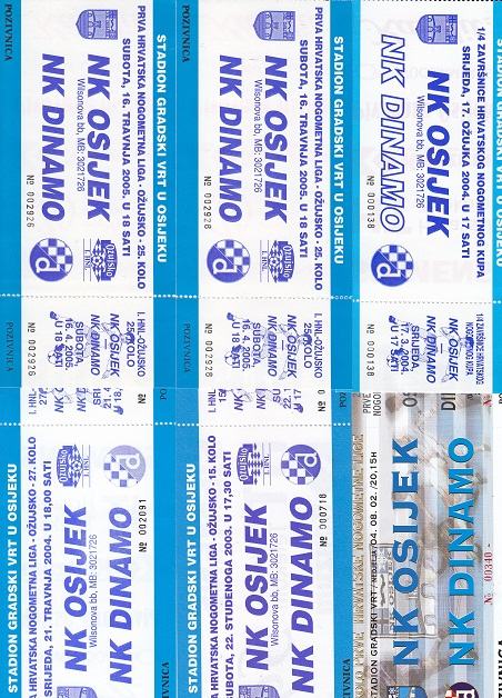 Prodajem 6 različitih karata sa utakmica NK Osijek - NK Dinamo Zagreb.