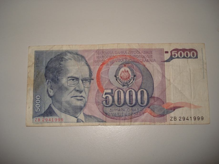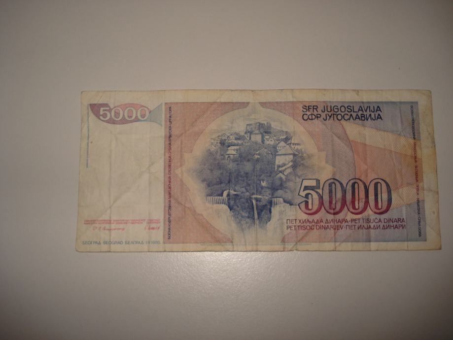 Novčanica od 5000 dinara SFRJ