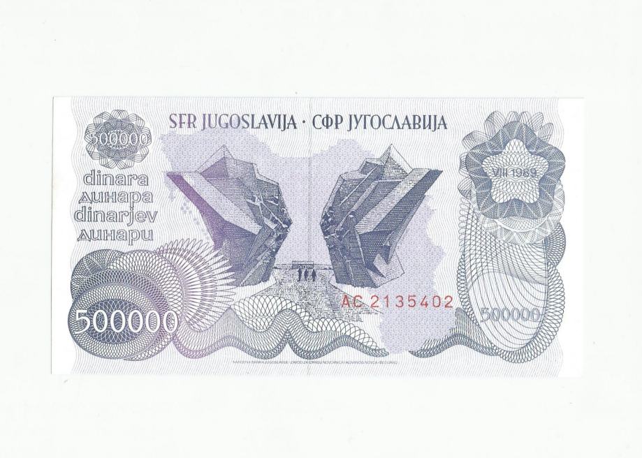 SFRJ 500 000 dinara 1989. UNC