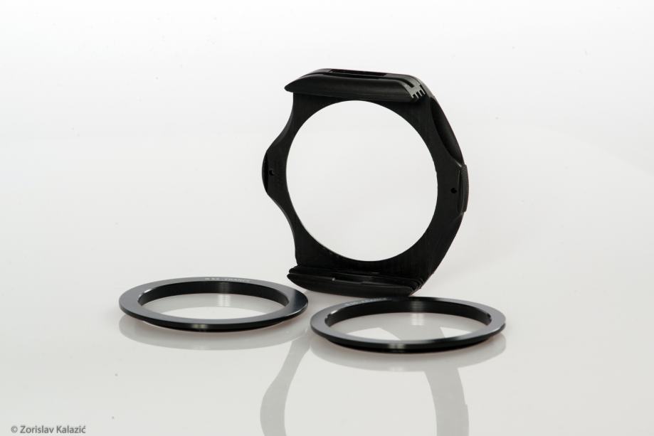 Univerzalni držač za filtere prilagođen za sve promjere objektiva, zahvaljujući jednostavnom adapterskom prstenu.