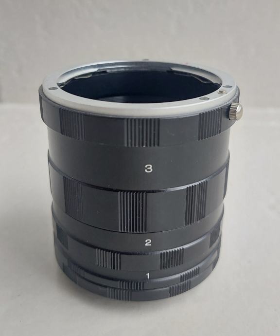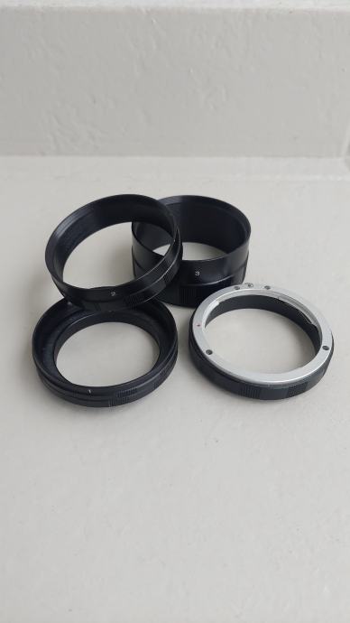 Prodajem set makro međuprstenova za fotoaparate. Sastoji se od tri odvojena prstena označena brojevima 1, 2 i 3, koji se mogu koristiti pojedinačno ili zajedno za različite razine povećanja pri makro fotografiji. Prstenovi se postavljaju između tijela fotoaparata i objektiva kako bi se smanjila minimalna udaljenost fokusiranja i omogućilo snimanje sitnih detalja iz neposredne blizine.