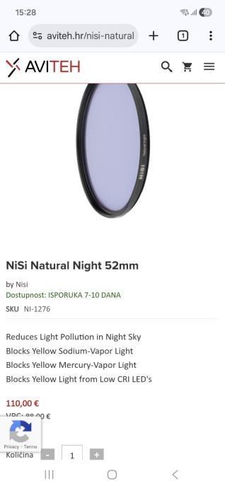 - Potpuno novi filter, kupljen prije par mjeseci, ali nisam nikada imao prilike ga iskoristiti, tako da nije niti napustio svoje pakiranje. Uklanja svjetlosno zagađenje, etc...