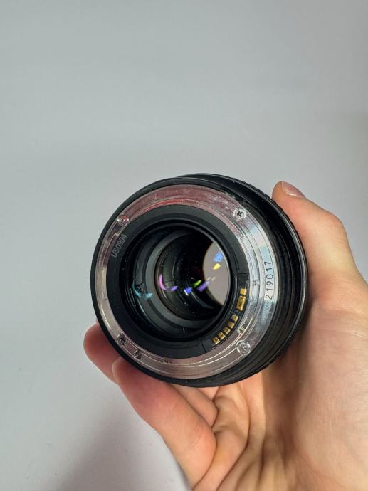 Objektiv je u savršeno očuvanom stanju, i izvana i iznutra. Stakla su čista, bez ogrebotina, bez gljivica i magljenja, AF radi brzo i precizno. Korišten je pažljivo, većinu vremena uz zaštitni filtar i u torbi, nikad bačen u ruksak s ključevima, nikad udaren niti padnut.