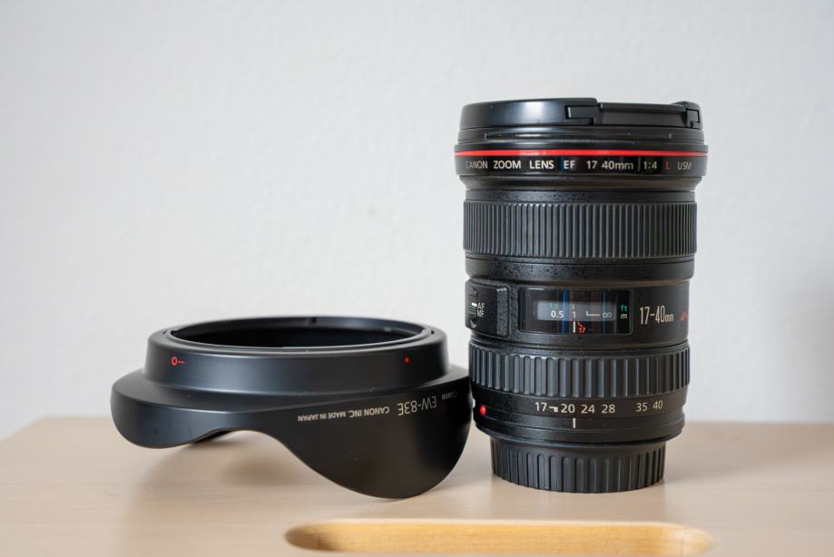 Canon EF 17-40mm f/4L USM objektiv, očuvan s čistim staklima. Korišten uglavnom za statična snimanja, zadnje tri godine nije uopće korišten.