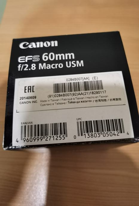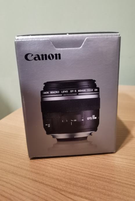 Canon 60mm f2.8 macro, ispravan, očuvan, kutija i papiri,račun, prvi vlasnik, cijena 260 eura