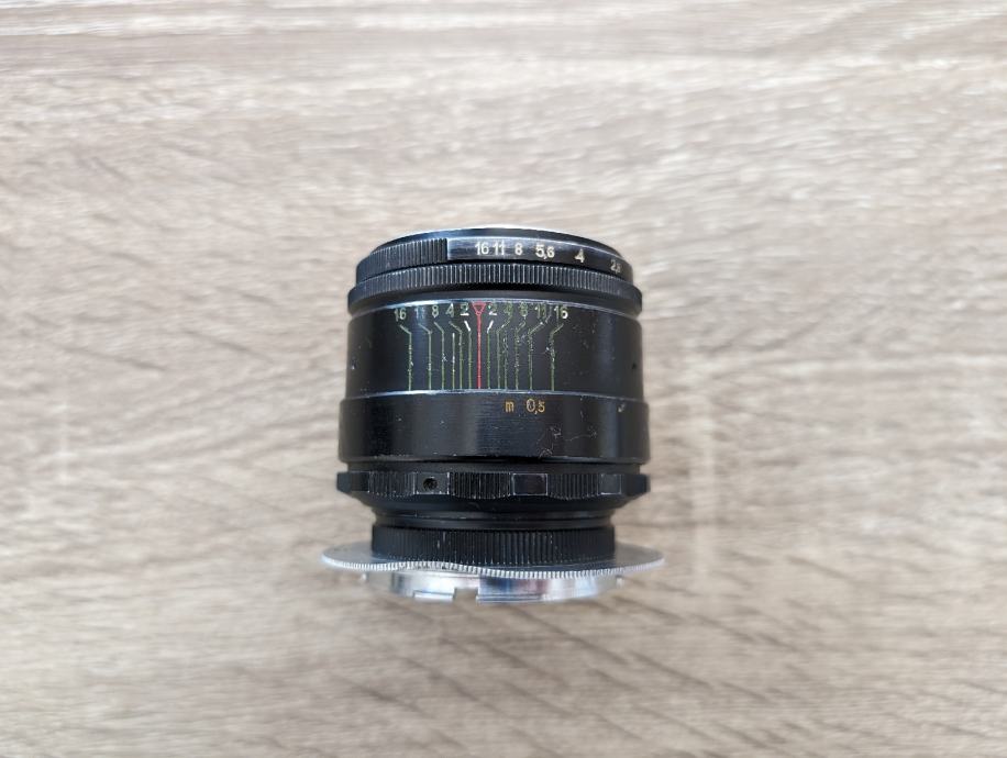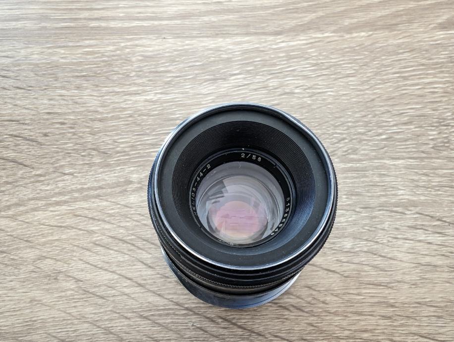 Helios 44-2 s pretvaračem m42 u A-mount. Ima ogrebotina i udubljenja. Leće su savršeno dobre.
