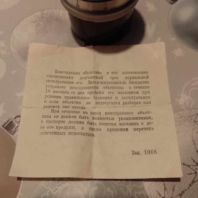 Objektiv sovjetske proizvodnje. Kopija je predratnih Zeissovih objektiva. Neoštećen je i dolazi s pripadajućom kutijicom.