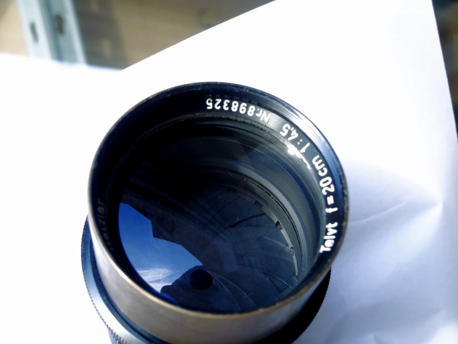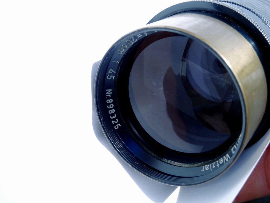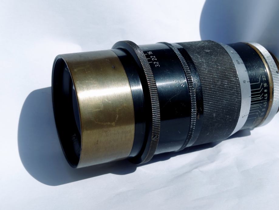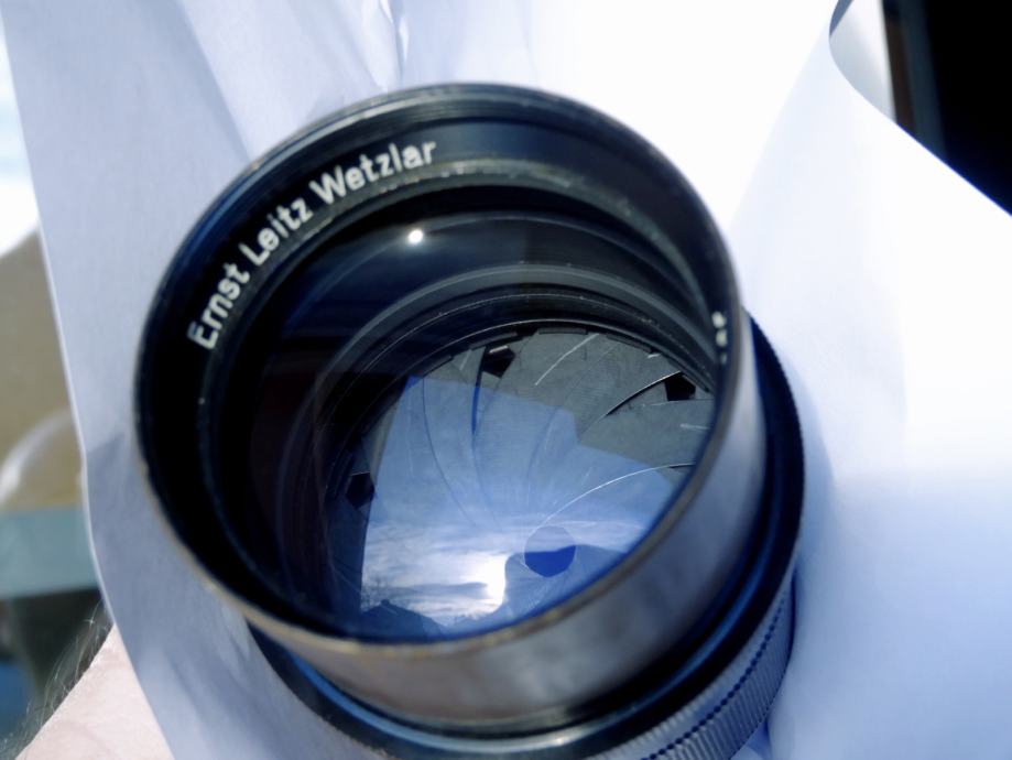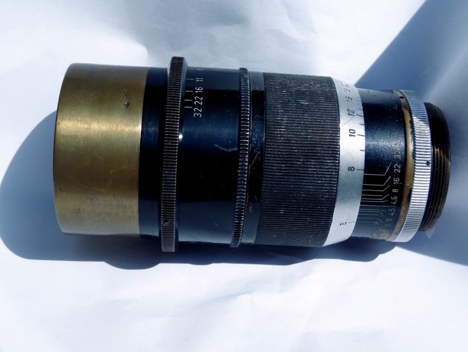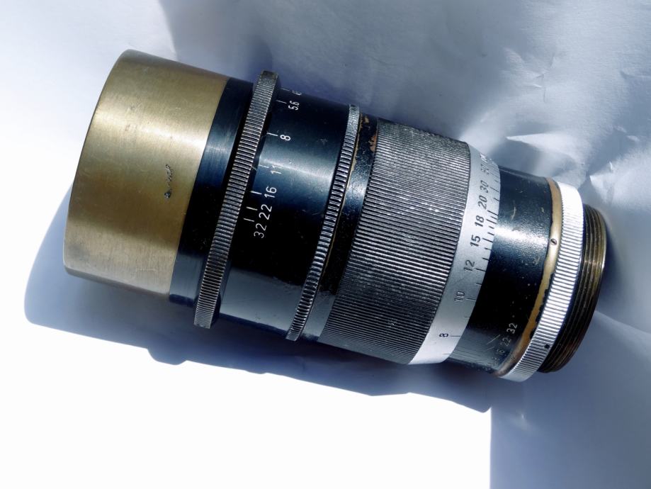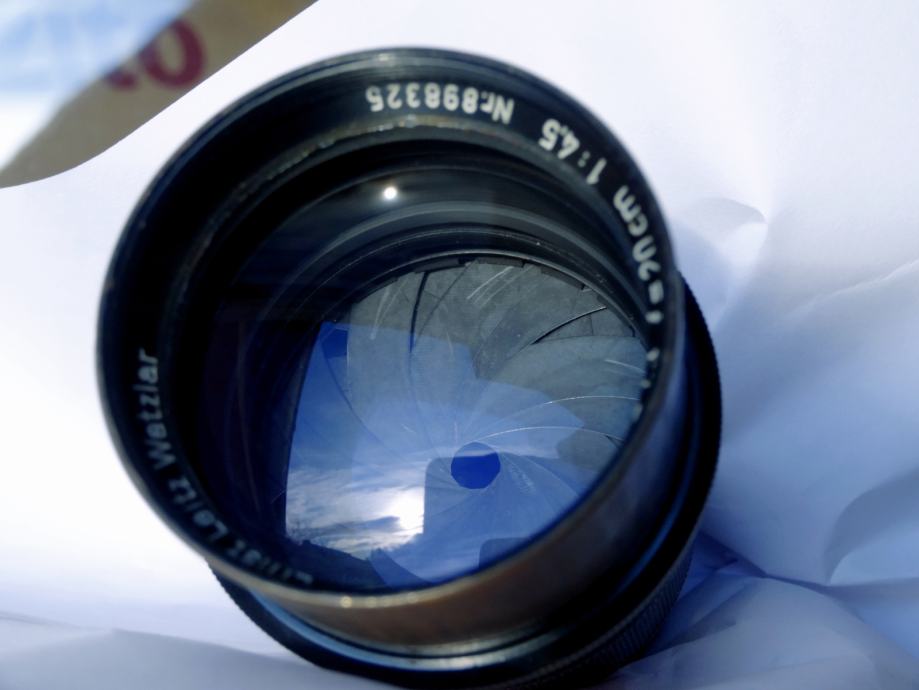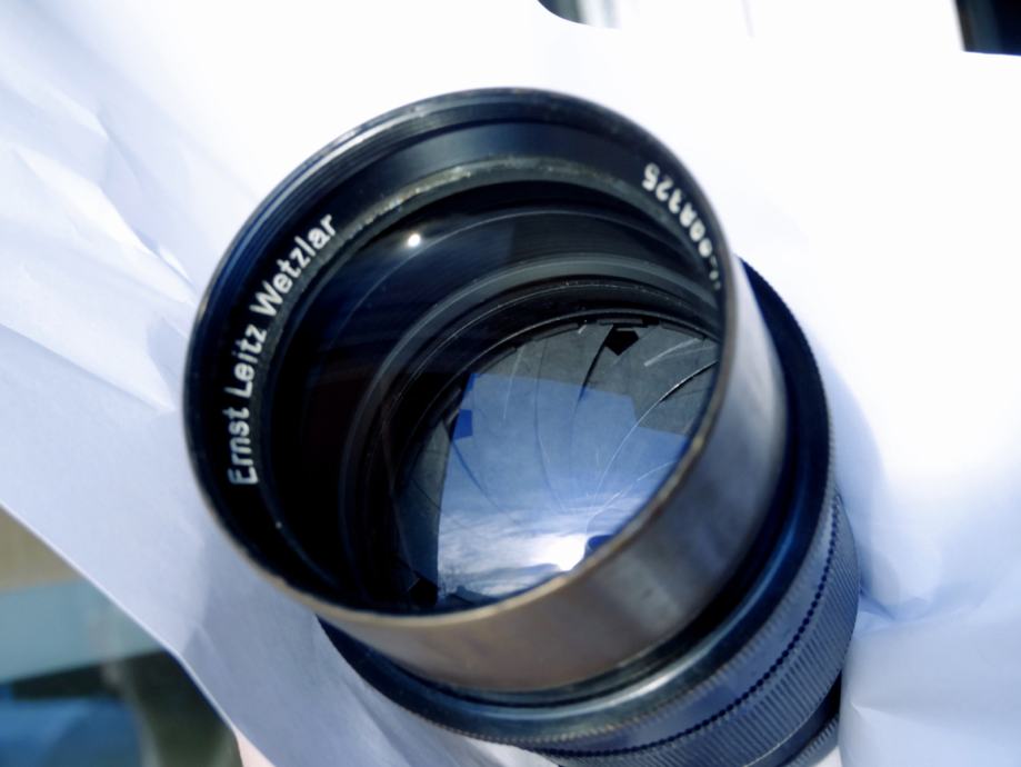 Antični objektiv za Leica Visoflex sisteme. Znači ima fore izpred aparata, da se stavi Visoflex. Interesantna opcija je stavit taj objektiv na Pentacon Six ili Pentax 6x7. Testirano, to je moguče i projecirana slika dovoljno je velika. Objektiv je čist i zdrav iznutra. Prednji coating ima fine znakove čiščenja, a pozadi dve fine praskice. Neče to skoro ništa degradirat sliku. Poviše, svaki treči list blende izdvojen je. Originalno imalo je 21 lističa, pa je bilo micanje težko. Sada radi fino i lako. Pošta 10 EUR ili osobno.