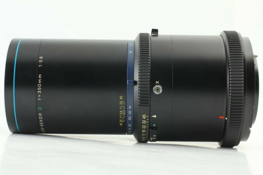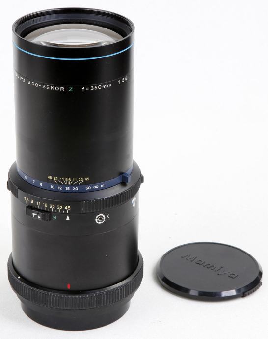 Mamiya Apo-Sekor Z 350mm f/5.6 lens, nosač, Mamiya RB - RZ Lens Hood M77 No. 2 + Mamiya kožna torbica.