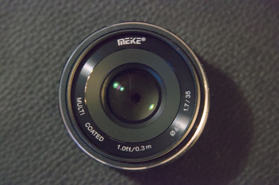 Meike 35mm f1.7 (f1.7 - f22) objektiv za e-mount. Optički perfektan. Manje ogrebotine po "kučištu" (nije nov).