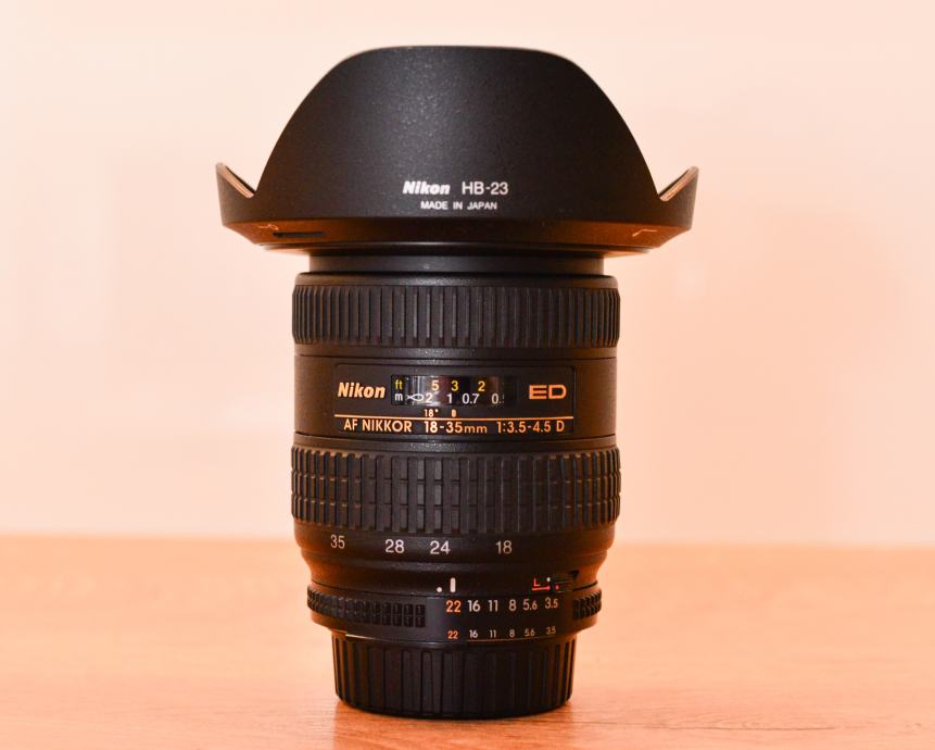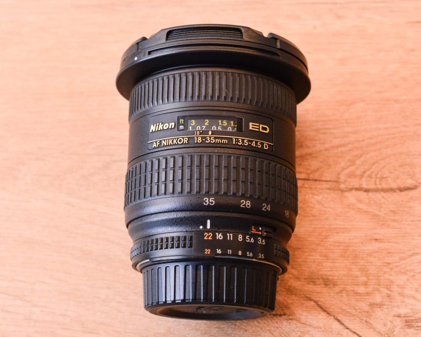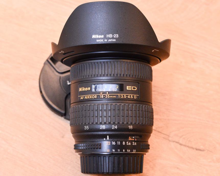 Nikkor AF 18-35mm f/3.5-4.5D ED + originalno sjenilo,prednji i zadnji poklopac, UV filter i originalna kutija.