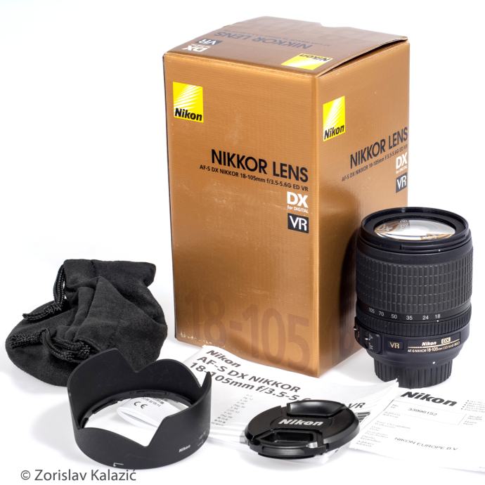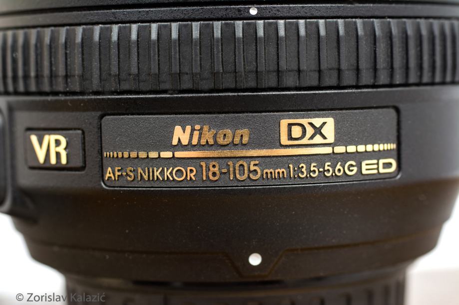 Napredan objektiv sa zumom DX formata s rasponom fokusa od 18 do 105 mm (35 mm i ekvivalent Nikon FX formata: od 27 do 157,5 mm).