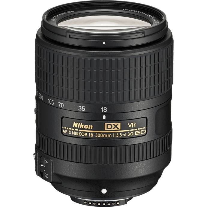 Objektiv DX formata sa 16,7x zumom:: sa žarišnim rasponom od 18 do 300 mm (ekvivalent FX formata: 27 – 450 mm). Omogućuje izvanredno svestranu pokrivenost u rasponu od širokokutnog do supertelefotografskog zuma.
