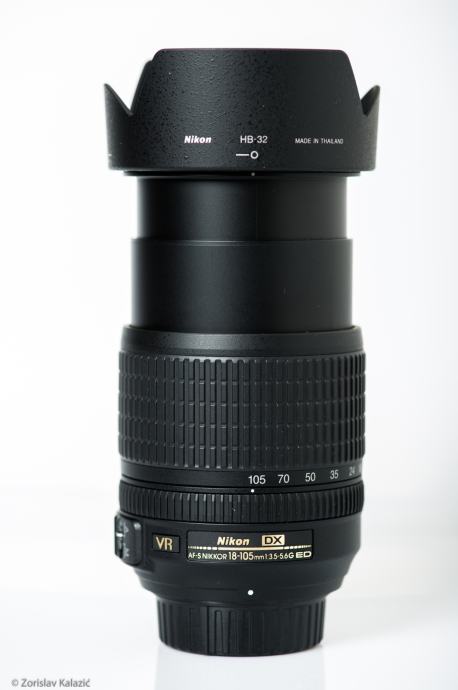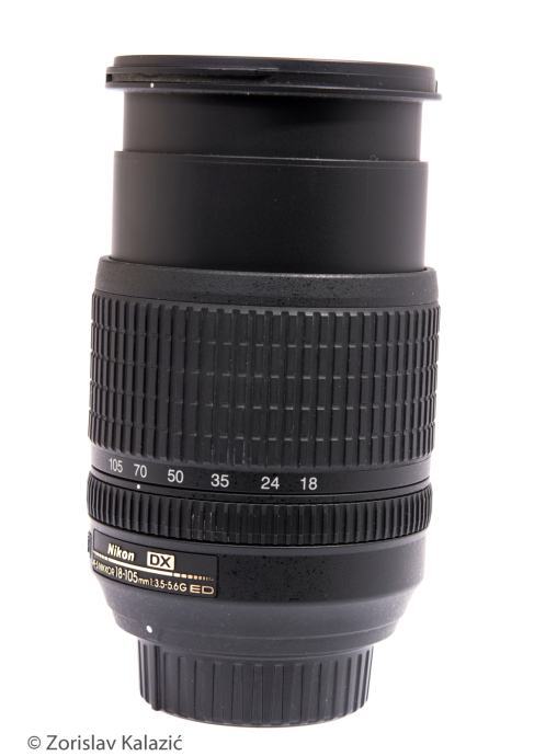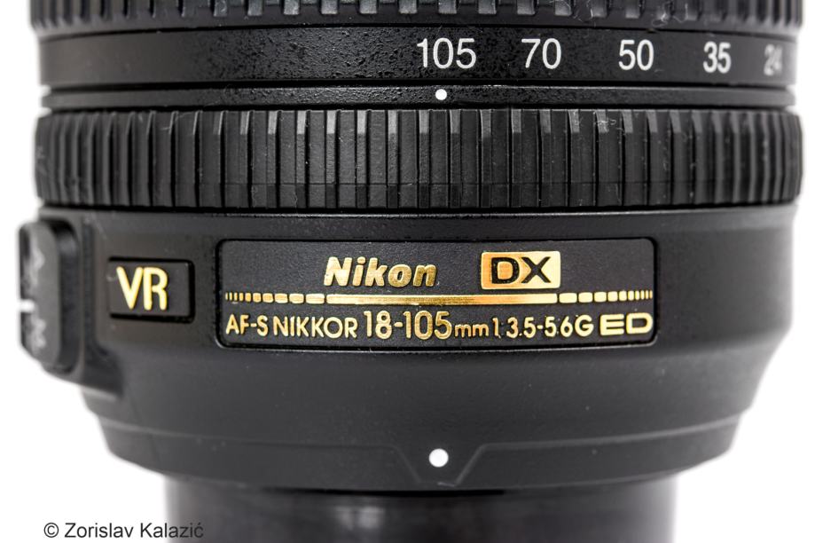 Napredan objektiv sa zumom DX formata s rasponom fokusa od 18 do 105 mm (35 mm i ekvivalent Nikon FX formata: od 27 do 157,5 mm).