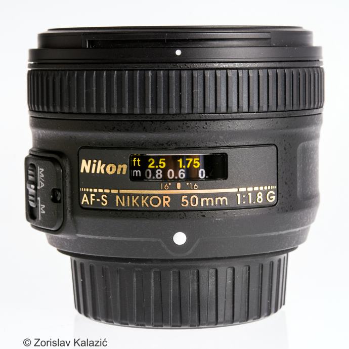 Nikon Nikkor 50-milimetarski standardni objektiv FX formata (75 mm pri upotrebi s Nikonovim SLR fotoaparatom DX formata).