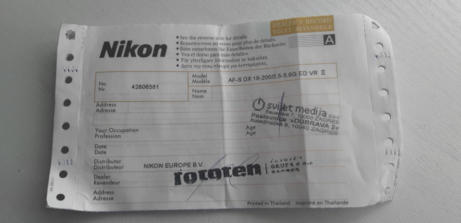 Nikon Nikkor AF-S DX 18-200 mm f/3,5-5,6 G ED VR II - 420 eura
